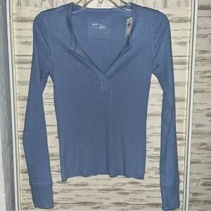 AERIE Womens Fireside Stretch Henley Long Sleeve Shirt Baby Blue Size Medium