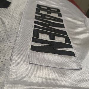 The new Willie Beamen men's jersey from the iconic film Any Given Sunday is now available in black and white colors. Made of 100% mesh polyester, this premium jersey is lightweight and breathable, perfect for game day or everyday wear. The stitched letters and numbers add a touch of authenticity, making this jersey a must-have for any Any Given Sunday fan.
