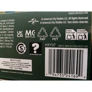 This Mattel collectible set features Elphaba and Deluxe Glinda dolls from the movie "Wicked". The package has a unique url misprint of wicked.com, making it a rare find.