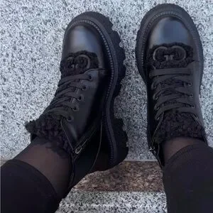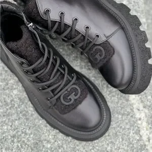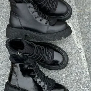 Winter leather boots with fur inside in black leather made by Ukranian designers, very warm and stylish