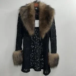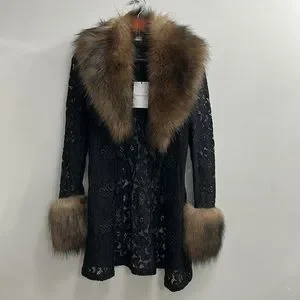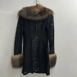 Alessandra Rich lace faux-fur detail coat NWT