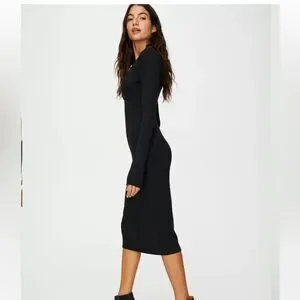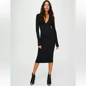 Aritzia Wilfred Free Abby Dress Black Deep Plunge Long Sleeve