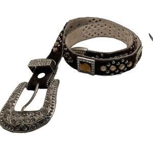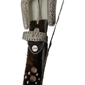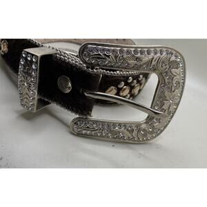 BHW Womens M Belt Leather Faux Cow Fur Rhinestone Western Cowgirl Bling Studded
