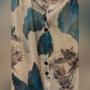 Ben Sherman Women’s 100% Silk Button Up Floral Blouse Medium Lavender and Blue