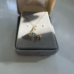 Never worn! Fish necklace with light blue stone. Perfect condition. Mark on box.