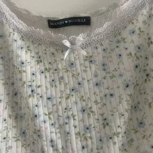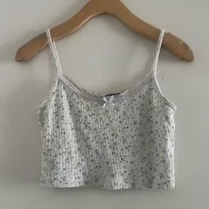 Brandy Melville Super Cute Cropped Floral Tank Baby Blue Green Sz S
