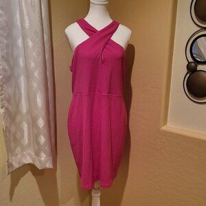 Michael Kors solid crisscross mini dress Size XL NWT Dark Pink