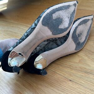 Low-cut bootie crafted from lace with signature faux-pearl heel detailing