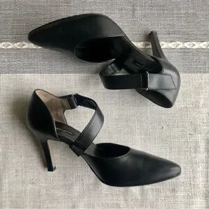Excellent Paul Green Desire D'orsay Strappy Pumps in Black Leather, US Size 9