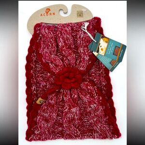 NECK WARMER SCARF Collar Red Crochet Cable Knit Decorative Flower Button Winter