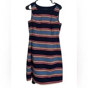 Tommy Hilfiger Pink/Blue/White Striped Sleeveless Midi Dress-size 6