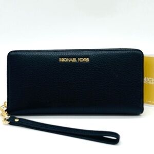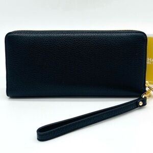 zippered pocket and multiple full-length bill compartments Removable leather wristlet strap with swivel clasp and a drop of 6 inches