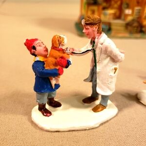 This Lemax lighted Countryside Veterinary is from the collection produced in 2007. It is a limited edition and was only produced that one year. It has been displayed only one time but I replaced the bulb while I had it out for the pictures. It is in pristine condition. The vet and other animals were purchased separately but will be included in the sale they cost $35 themselves. It is in it's original packaging and a very rare vintage piece of the Lemax Village Collection. It was retired in 2007 and it's item # is 75533.
