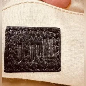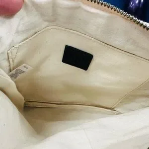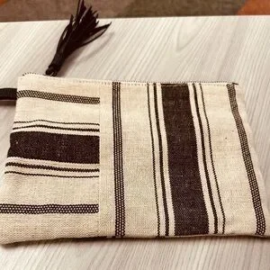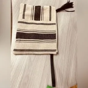 Multiple uses Handle & Tassel 100% Cotton Bag 9.5” x 7.5, Straps / Tag Genuine Leather, Black & Beige.