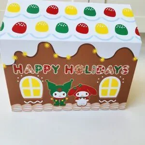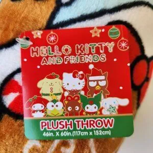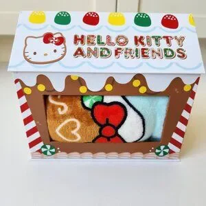 NEW! Cute Hello Kitty soft plush throw blanket in a gingerbread house gift box.