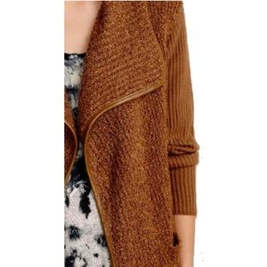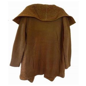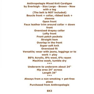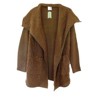 Anthropologie Mixed Knit Cardigan Large 10 12 Brown Boucle FNT Ribbed BACK NWT