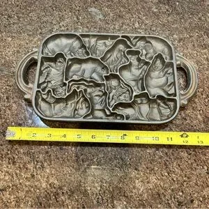 Vintage Cast iron animal puzzle cookie mold 1984 John Wright. This has never been used. Please note a few spots on it as shown due to its age. Funtime baking cookies and delicious treats with your kids and grandkids. Holidays birthdays celebration unique cast iron cookie mold fun time Baking with family
