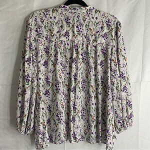 Caslon Floral Bell Sleeve V Neck Blouse, size XXL