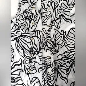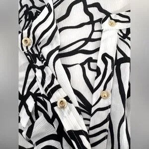 Cute floral pattern throughout with gold snap button closures down the front. The snaps make the top unique and also easier to close for anyone who may have issues with standard buttons.