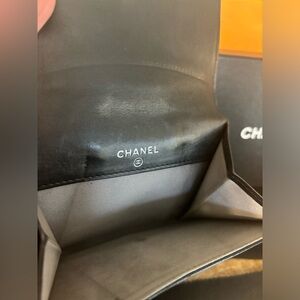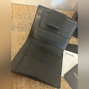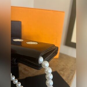 CHANEL FULL INCLUSION Camellia Patent Leather Bifold Pearl Crossbody Wallet