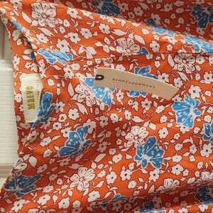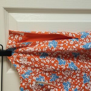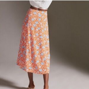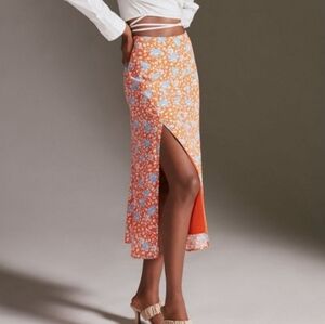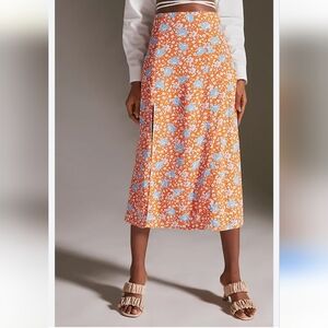 Brand new with tags Maeve skirt by Anthropologie. Zips at side, size 14. with orange slip underneath and side slit design. vibrant orange and blue floral pattern.