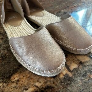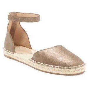 NEW $140~Eileen Fisher~LALA Gold Leather Ankle Strap Espadrille Flats~8/8.5