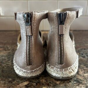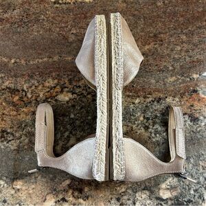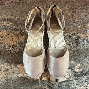 NEW $140~Eileen Fisher~LALA Light Metallic Gold Leather Ankle Strap Espadrille Flats~Sandals~8/8.5