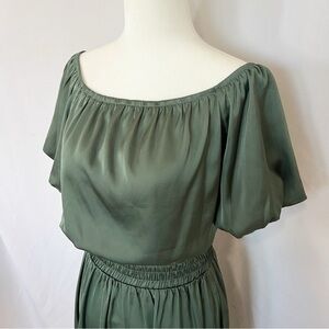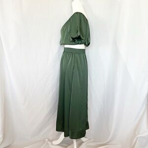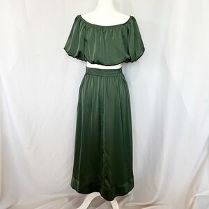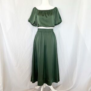 Satin Puff Sleeve Off The Shoulder Top+ Skirt Set S