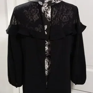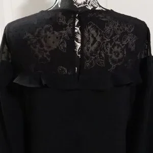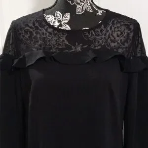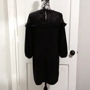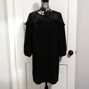 ποΈ π€LOFTπ€ - Black L/S Dress w/Sheer Polka Dot Ruffle Detail