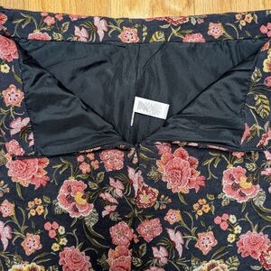 This pink and gray jacquard embroidered short mini straight pencil skirt from LOFT features a size zipper with clasp and gray lining in addition to beautiful flower pattern.
