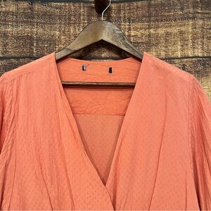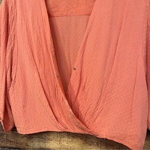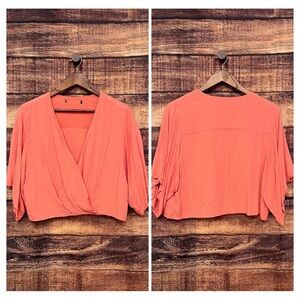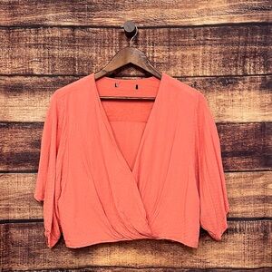 Forever 21 Coral V-neck Wrap Cropped flouncy short Sleeve Blouse Size XL