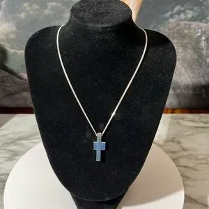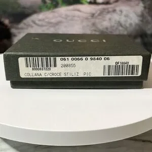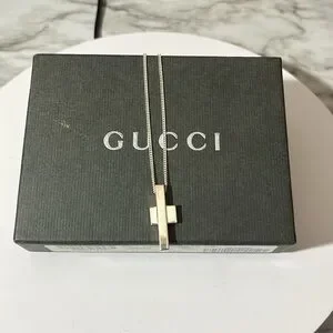 GUCCI STERLING SILVER CROSS 16” NECKLACE.