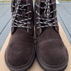 • Updating our iconic heritage chukka with a refined high top-design, the Neumel High combines premium materials and effortless style. A timeless boot made of rich suede, it's lined in repurposed UGGpure™ wool and finished with a durable Treadlite by UGG™ sole for all-day cushioning, offering a signature slipper-like feel indoors or out.