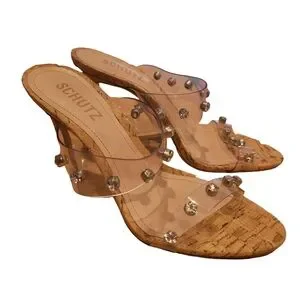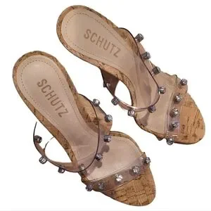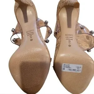 Schutz Ariella Cork Vinyl Stiletto Heel Sandals 6