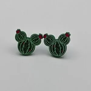 Mickey Mouse cactus green glitter acrylic stud earrings
