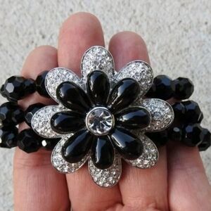 * THE BRACELET HAS THREE ROWS OF BLACK GLASS BEADS.