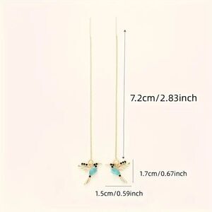 Wicked Silk Cute Dainty Flying Bird Dangling Earrings - Blue/Gold
