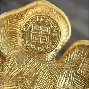 Authentic Vintage GIVENCHY Matte Gold Plated Stunning Signed Floral Cushioned Clip-On Earrings