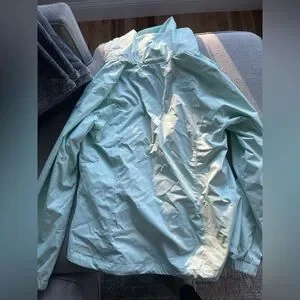 Used rain coat - great condition though! Pretty teal color. Size medium.