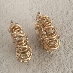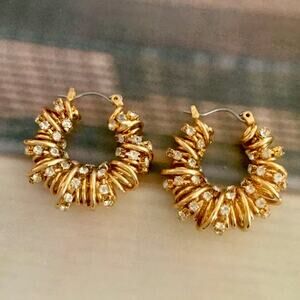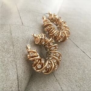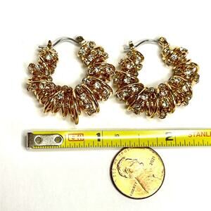 NEW Earrings Unique Rhinestone Wire Hoop Gold Tone Trendy Jewelry Trend O131