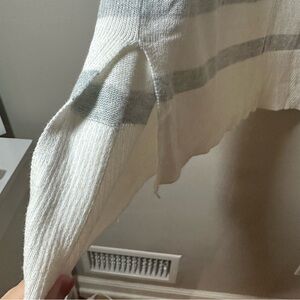 Gap stylish white and gray striped cardigan. Open front with pockets. Pockets have a rolled casual look. Perfect for layering. Sweater has slits on sides. In good condition overall. Comes from smoke free home.