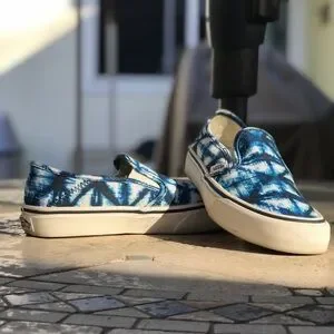 VANS Indigo Blue and Antique White Tie-Dye Slip-On Slide Tennis Shoes (Unisex)