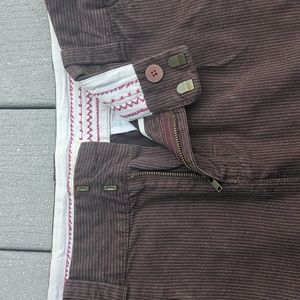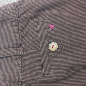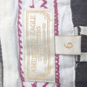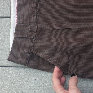 American Eagle Outfitters size 6 brown pinstripe skirt. circa 2006. side pockets and two back pockets secured with buttons. excellent like new condition.