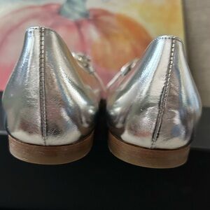 New Frances Valentine Shoes Silver Rhinestones Metallic Flats Leather Josephine