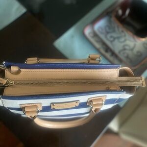 Kate Spade EUC Blue & Cream Camryn Wellesley Stripe Leather Satchel/Crossbody