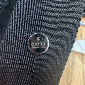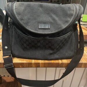 Beautiful, authentic, gently used Gucci GG black canvas diaper bag. Complete with black changing pad. Some slight wear on bottom corner piping and canvas, but otherwise very good, clean condition. Lots of love left in this beautiful bag! Will include original receipt, bag cover and Gucci box.