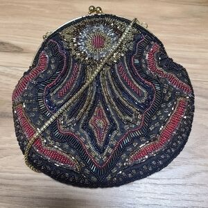 estate, vintage, Walborg 50's multi color art deco beaded evening bag purse. interior is in nice condition. special occasion, cruise, evening out. in used condition. see pics for details of condition and measurements
