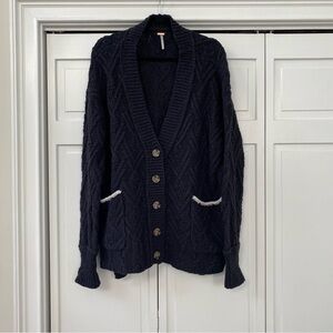 Free People Montana Cable Cardi Cardigan Varsity Button Down Sweater | Small