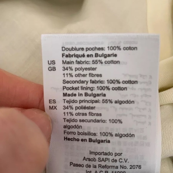 Main fabric: 72% cotton, 14% polyester, 9% acrylic, 5% other fibres, SECONDARY FABRIC: 100% cotton, Lining: 100% cotton