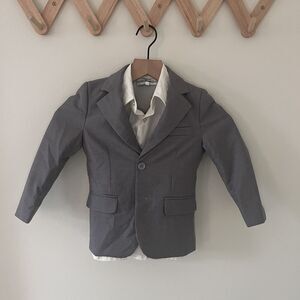 Boys 3 Piece Jacket Suit - Grey Pants & Jacket, Ivory Button Down Shirt - 4T